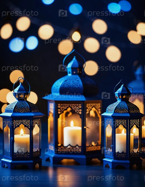 Мягко светящиеся арабские фонари освещают ночь во время Рамадана, приглашая друзей и семью собраться вместе для празднования и размышлений в теплой, праздничной атмосфере. Генеративный ИИ