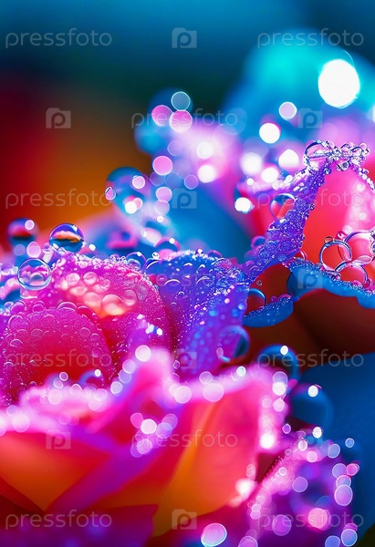 Множество ярких капель взрываются красочным всплеском, создавая потрясающую демонстрацию ярких оттенков на мягко размытом фоне. Застывшее движение. Красота природы в данный момент. ИИ
