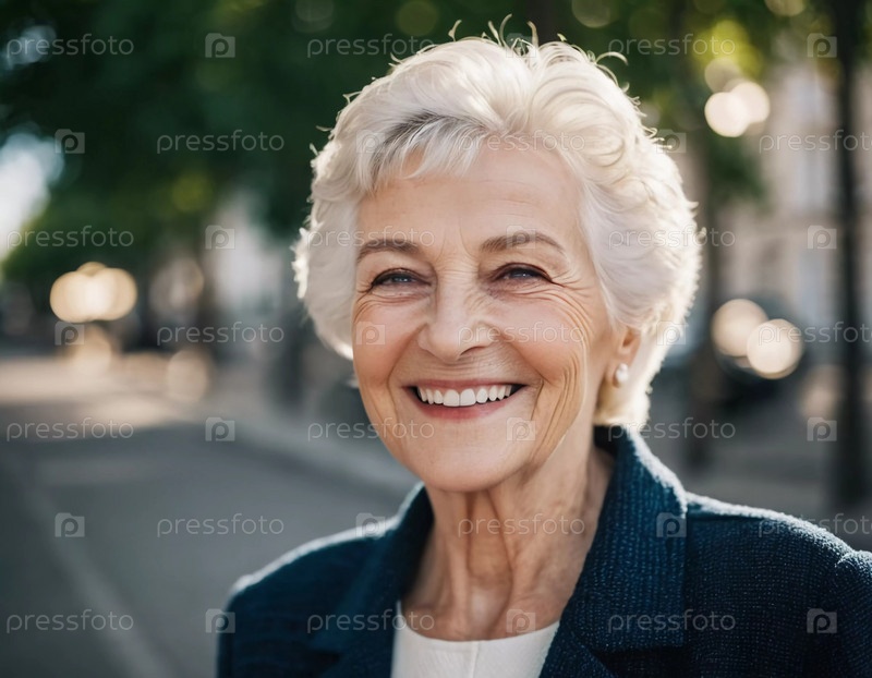 Утонченная улыбающаяся пожилая француженка на открытом воздухе. манера поведения раскрывает жизненный опыт и размышления, воплощая изящество и мудрость. ухоженная женщина 70 лет с седыми волосами