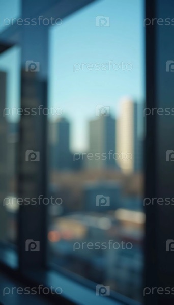 Размытая перспектива демонстрирует современный городской горизонт через стеклянную стену в сумерках, раскрывая яркость и сложность городской жизни. Угасающий свет отражает городскую энергию. Генеративный ИИ
