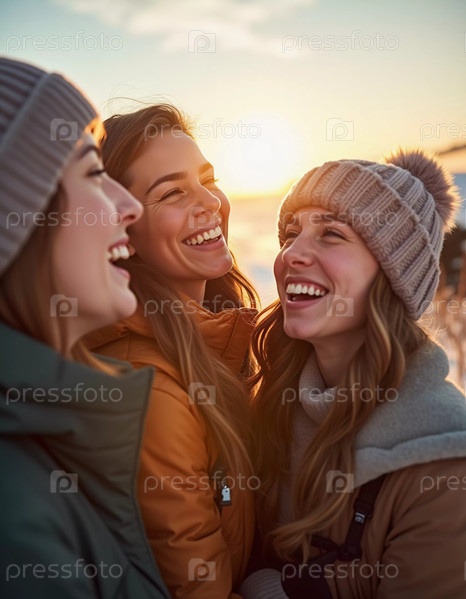 Молодые друзья собираются в зимней стране чудес, разделяя радостные моменты и смех под ярким солнцем. Они щеголяют в уютной зимней одежде, подчеркивая свое веселое приключение. Генеративный ИИ