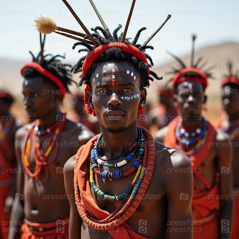 Участники фестиваля Водабе Мбороро Геревол собираются в традиционных нарядах, украшенных бусами и раскрашенных по телу, чтобы отпраздновать свое богатое культурное наследие в окружении пустыни