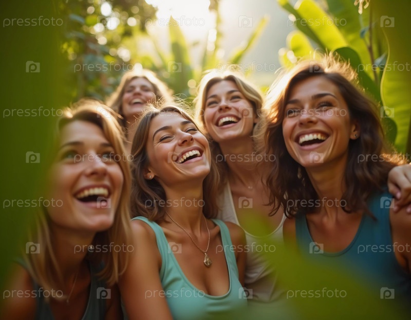Друзья празднуют летние каникулы в пышной тропической обстановке с смехом и улыбками среди яркой зелени.Тропы это климатические зоны Земли, в которых Солнце находится в зените по крайней мере один раз в год