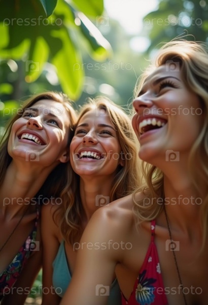 Друзья празднуют летние каникулы в пышной тропической обстановке с смехом и улыбками среди яркой зелени.Тропы это климатические зоны Земли, в которых Солнце находится в зените по крайней мере один раз в год