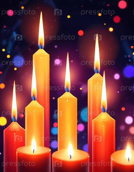 Множество свечей Адвента мерцают ярким пламенем, освещая окрестности и воплощая дух предвкушения и радости в праздничный сезон. Генеративный ИИ