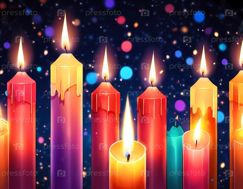 Множество свечей Адвента мерцают ярким пламенем, освещая окрестности и воплощая дух предвкушения и радости в праздничный сезон. Генеративный ИИ