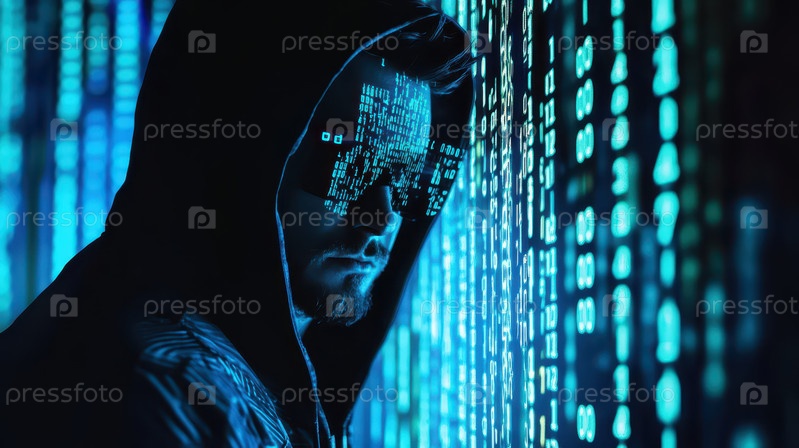 Футуристический мужской профиль с наложением цифровых данных