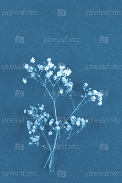 Маленький белый цветок на синем фоне
