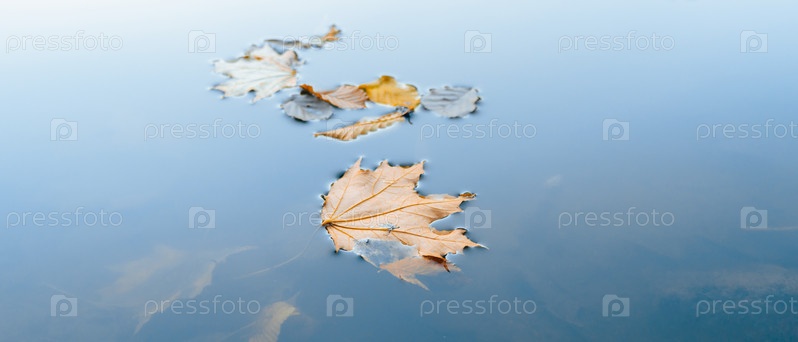 Желтые листья на спокойной поверхности воды