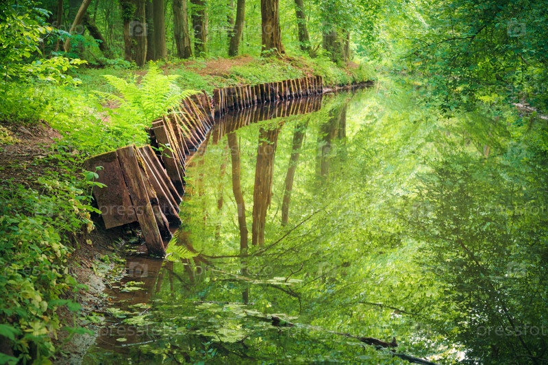 Спокойная река, текущая через зеленый лес