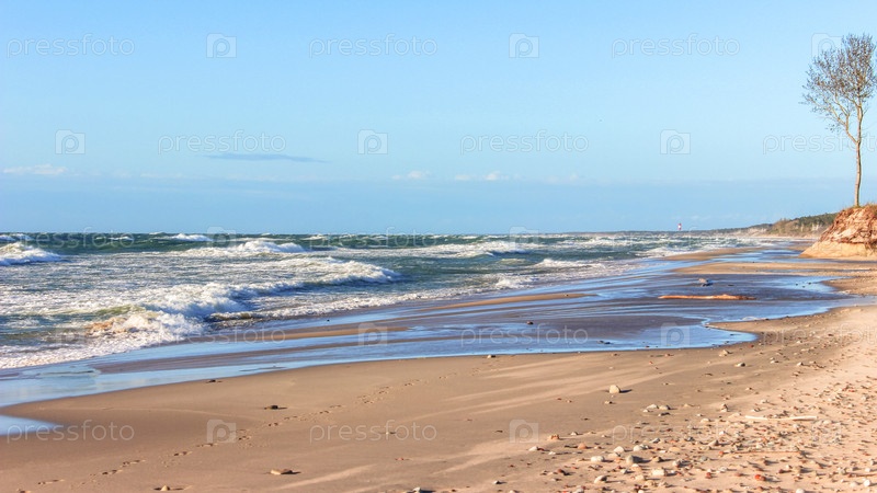 Широкие пляжные волны на море в ясный солнечный день