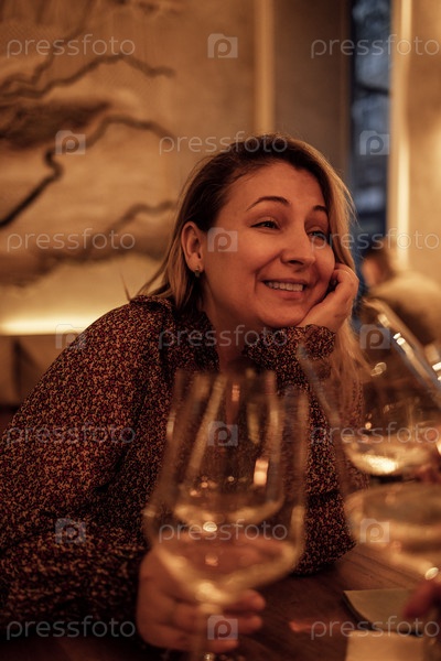Молодая женщина поднимает бокал шампанского за праздничным столом