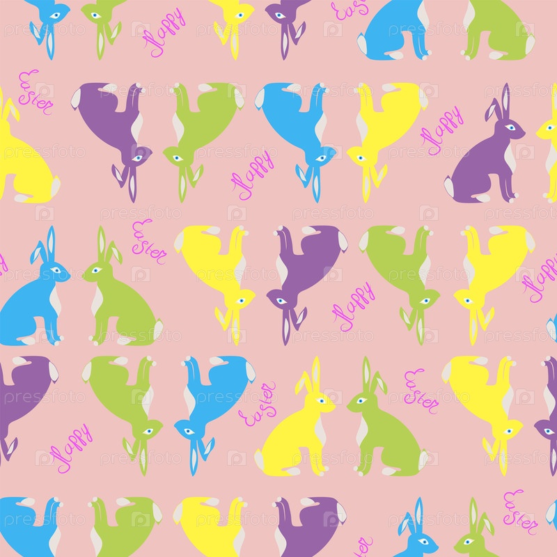 Бесшовный фон без фона с цветными пасхальными кроликами