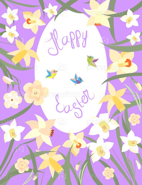 Пасхальная открытка с пасхальными кроликами и пасхальными яйцами
