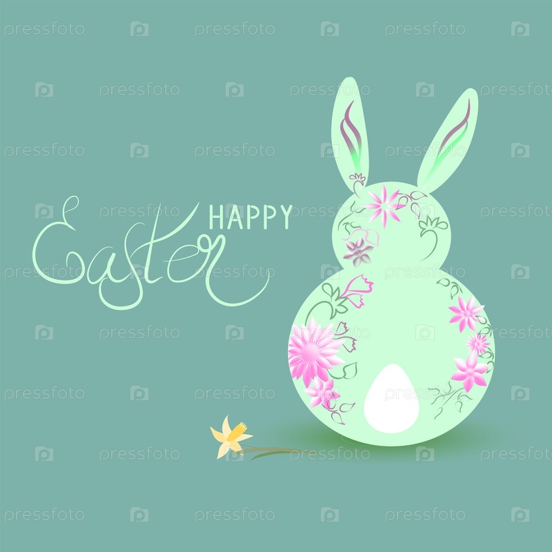 Поздравительная открытка с пасхальными кроликами и пасхальными яйцами