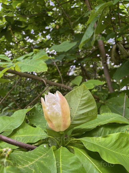 Летом в парке цветет магнолия обратнояйцевидная красивым цветком