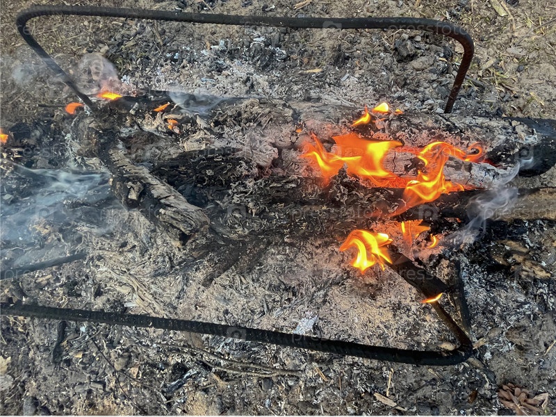 В лесу разводят костер для барбекю