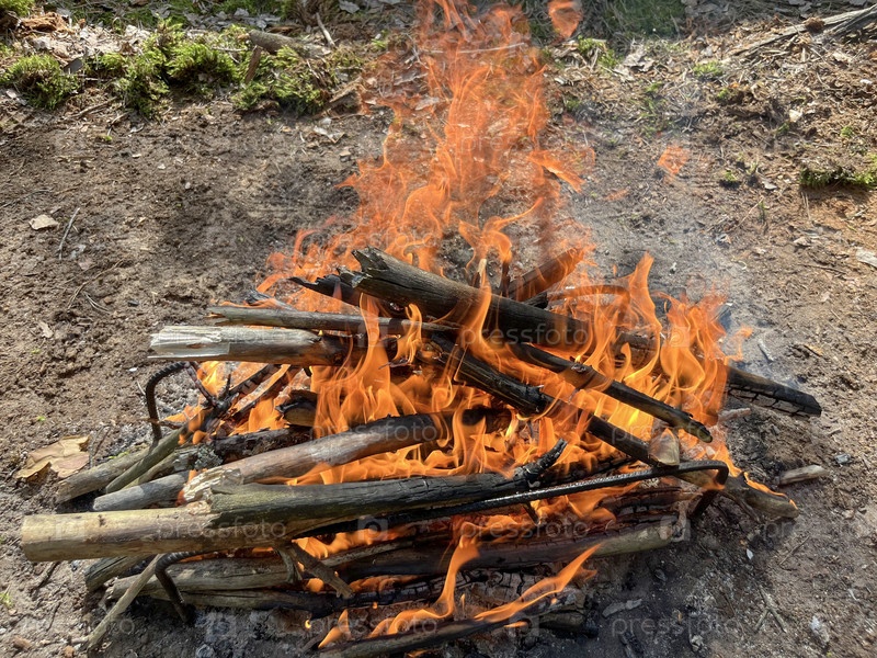 В лесу разводят костер для барбекю