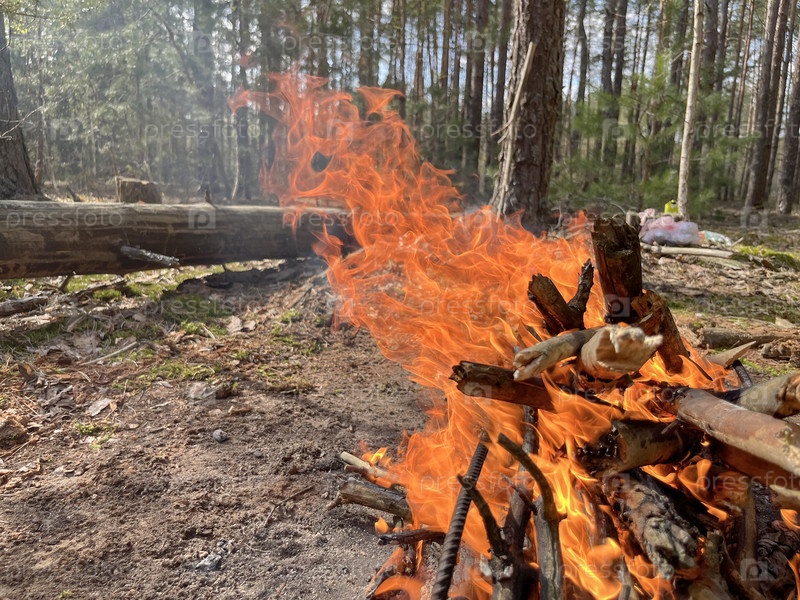 Костер для барбекю разводят весной в лесу
