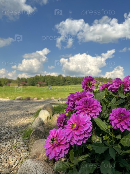 В стране цветут темно-розовые карликовые георгины