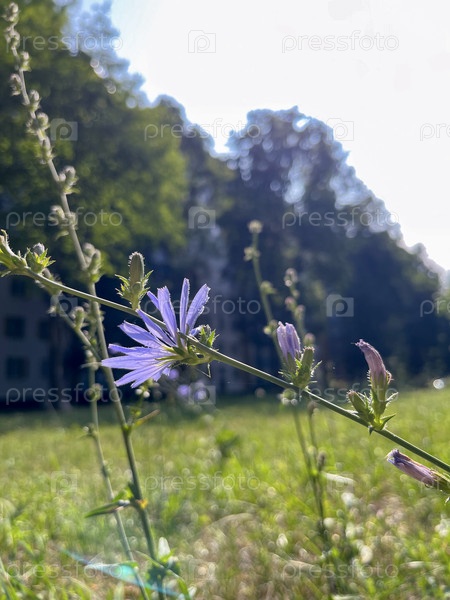 Летом в городе цветут синие полевые цветы