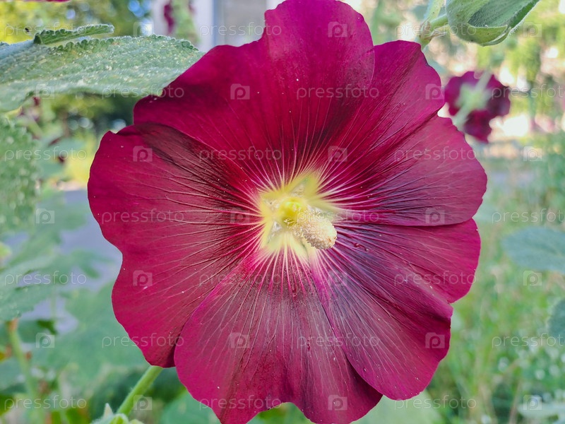 Цветет красивый красный цветок мальвы