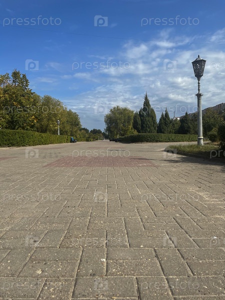 Широкая городская аллея и фонарь на ней