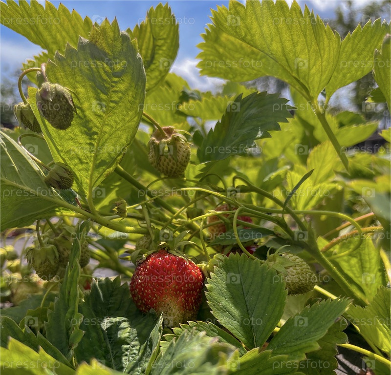 Красная клубника созревает на открытом воздухе в мае