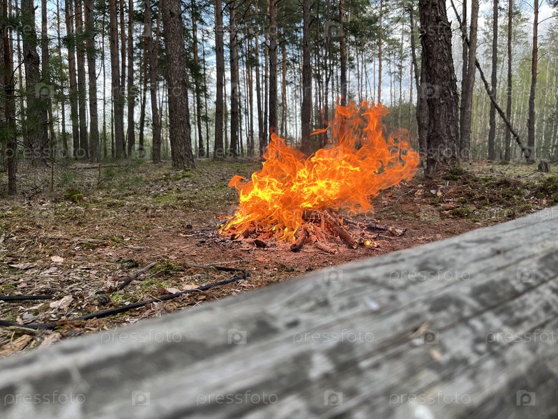 Костер для барбекю разводят весной в лесу