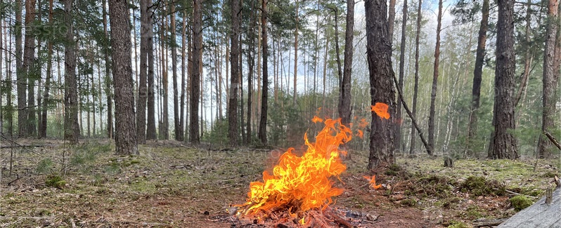 В лесу разводят костер для барбекю