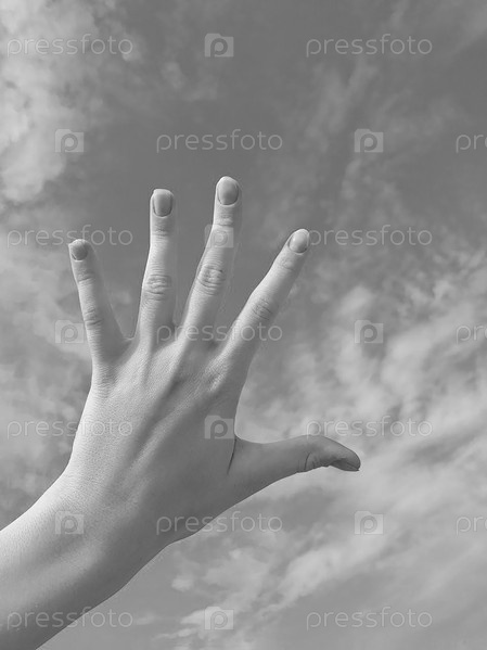 Женские руки на фоне летнего голубого неба с облаками