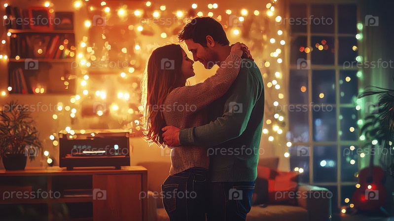 Пара обнимается и разделяет нежный момент на фоне огней