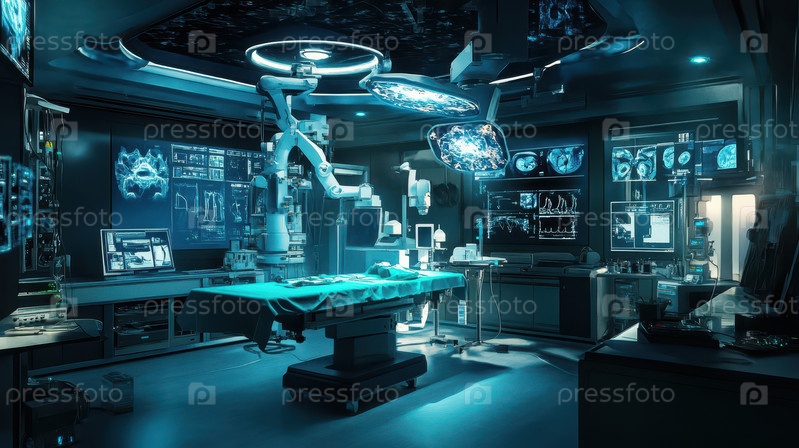 Футуристическая роботизированная хирургическая комната с передовым медицинским оборудованием