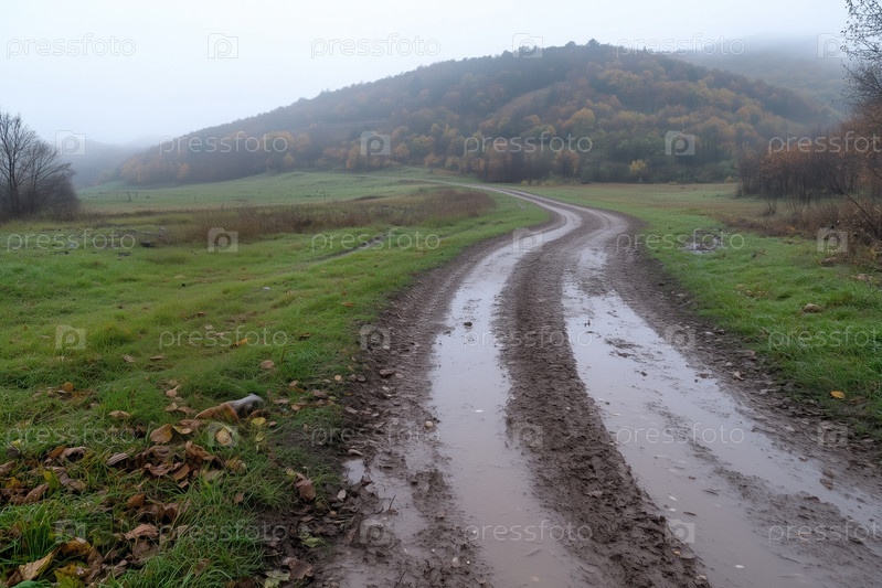 Грунтовая дорога через осенний сельский пейзаж