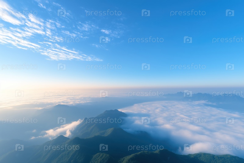 Гора и голубое небо с облаками утром