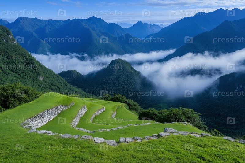 Древние горные террасные поля в высокогорье