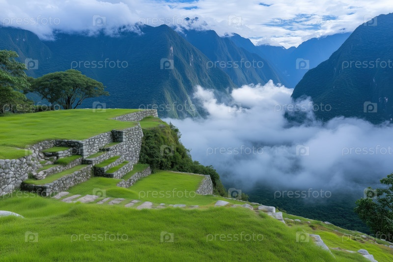 Древние горные террасные руины в высокогорье