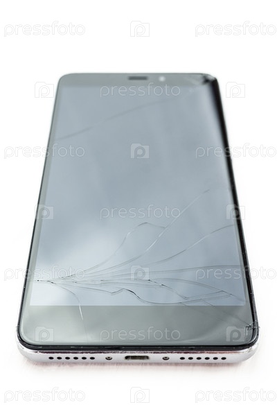 Сломанный смартфон на белом фоне