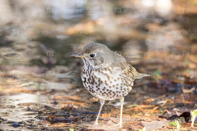 Певчий дрозд на земле