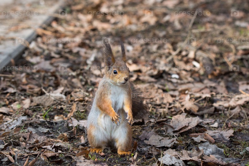 Рыжая белка на дереве