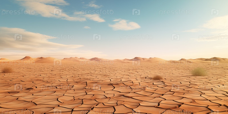 Пейзаж сухой глинистой пустыни с потрескавшейся поверхностью