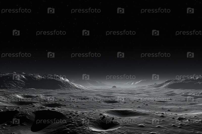 Пустая безжизненная лунная поверхность с кратерами под черным небом, фон, пейзаж