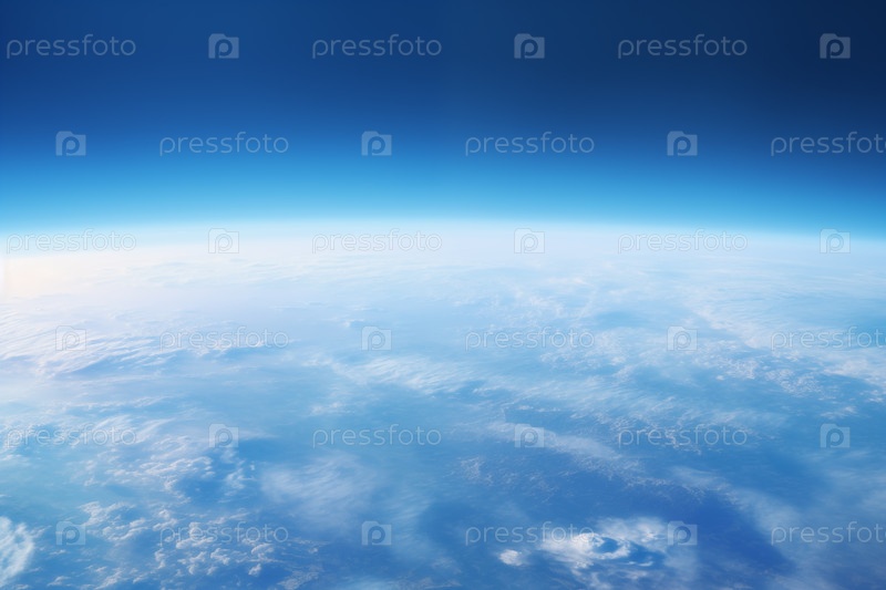 Вид из космоса на голубую поверхность земли с атмосферной дымкой и облаками