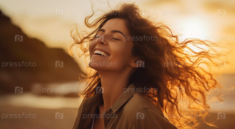 Женщина позирует с вытянутыми вперед руками перед солнцем
