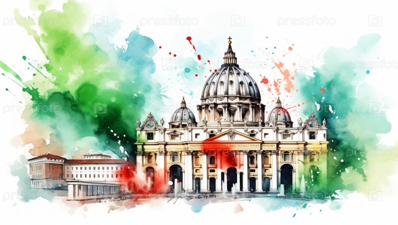 Ватикан Рим Италия. акварельная иллюстрация