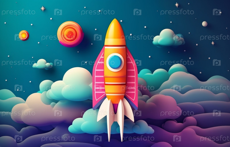 Фэнтезийная космическая ракета летит в космосе к неизведанным звездам и галактикам, научная фантастика и астрономическая концепция