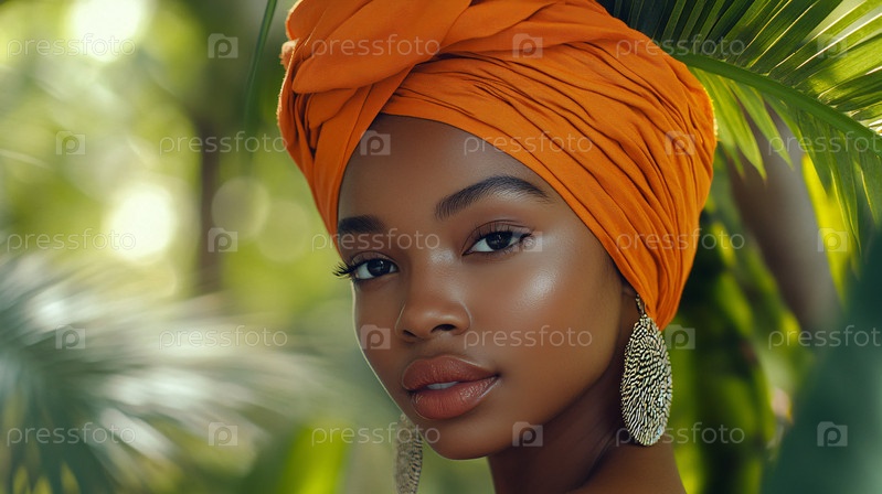 Человек в оранжевом тюрбане с декоративной серьгой в тропической среде