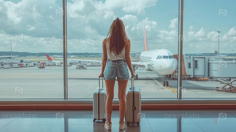 Одинокий путешественник стоит на рассвете, с нетерпением предвкушая свое следующее путешествие, в то время как самолеты ждут на залитой солнцем взлетной полосе