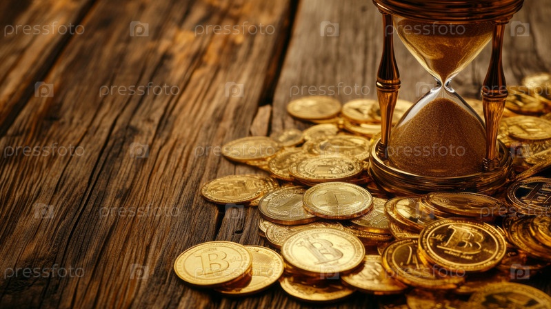 Изображение олицетворяет вечную связь времени и богатства, символизируемую золотыми монетами, текущими через песочные часы