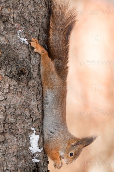 Белка на дереве зимой